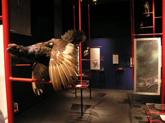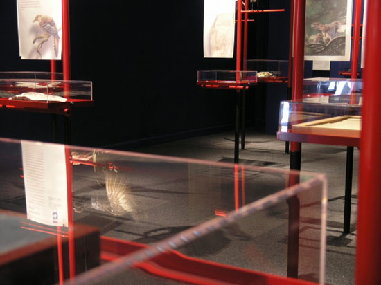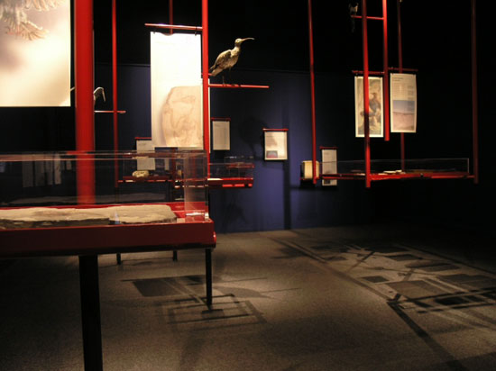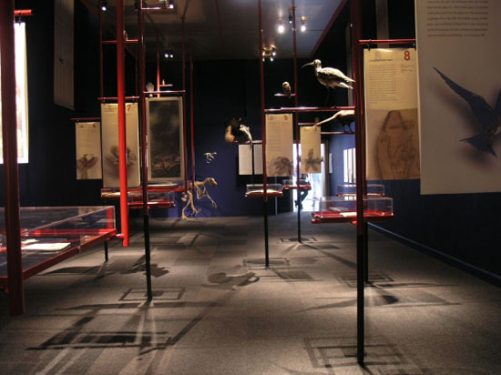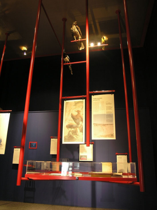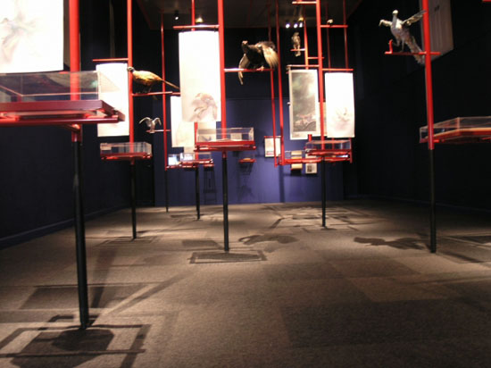 De tentoonstelling was vormgegeven als een soort van vogelkooi, met Chinese kleuren (blauw en rood) en een speciaal gemaakt plafond van goud. De vitrines, geheel van glas, waren onderdeel van de ‘takken’waarop de vogels in kooien zitten. Zoook waren er extra takken geplaats waarom hedendaagse opgezette vogels ‘rustten’in de tentoonstelling. Ook de teksten en de afbeeldingen waren in dun rijstenpapier gepresenteerd om de oosterse sfeer te benadrukken.